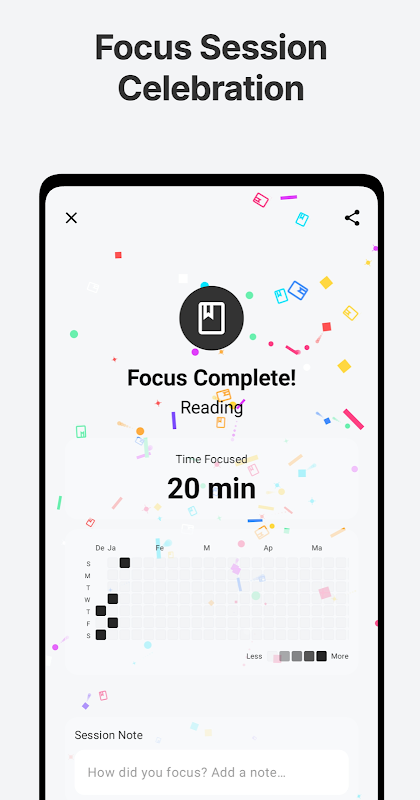 - سجل الجلسات: راجع جلسات التركيز المكتملة بشكل منهجي لتتبع إنجازاتك والاحتفاء بها.