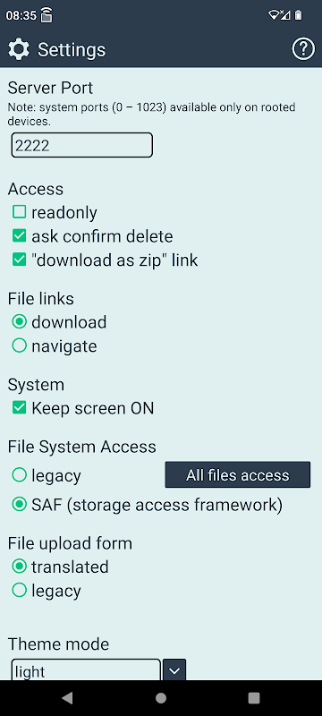 2. اضغط على "ابدأ" لبدء تشغيل خادم HTTP. سيعرض التطبيق رابط الوصول.