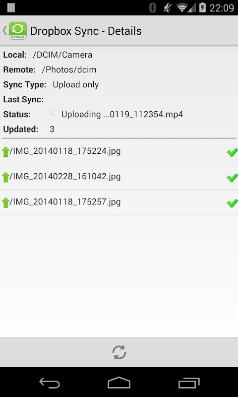 ★ Flexible options when files changes on both phones and Dropbox. Configure to Upload local, download remote or just skip them.