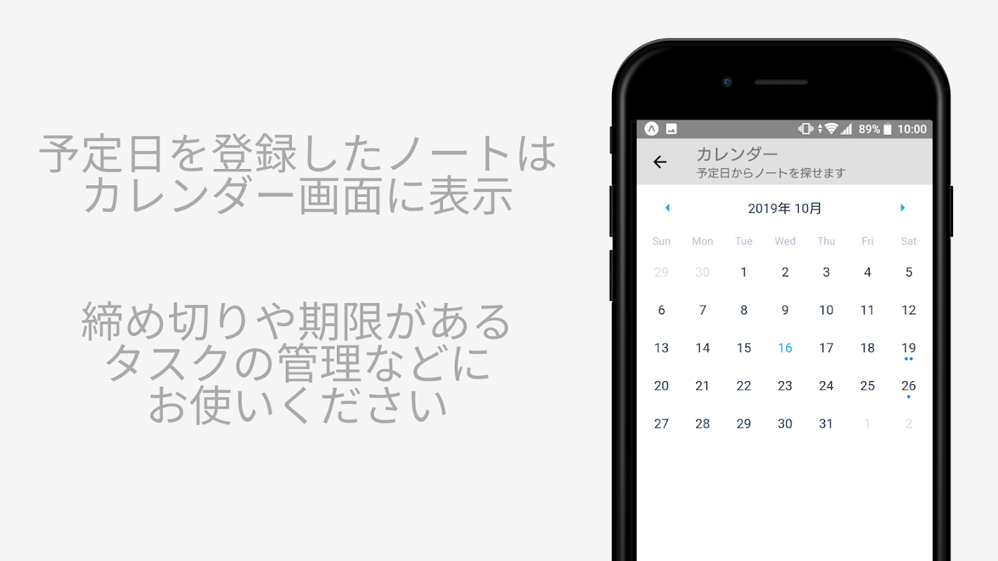 ノートには予定日を登録できます。予定日を登録しておけば、カレンダーの該当する日付にノートが表示されます。