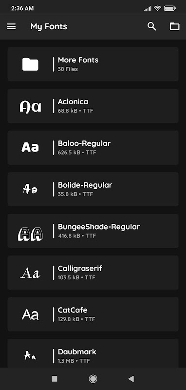 • Open fonts directly from file manager or from app.