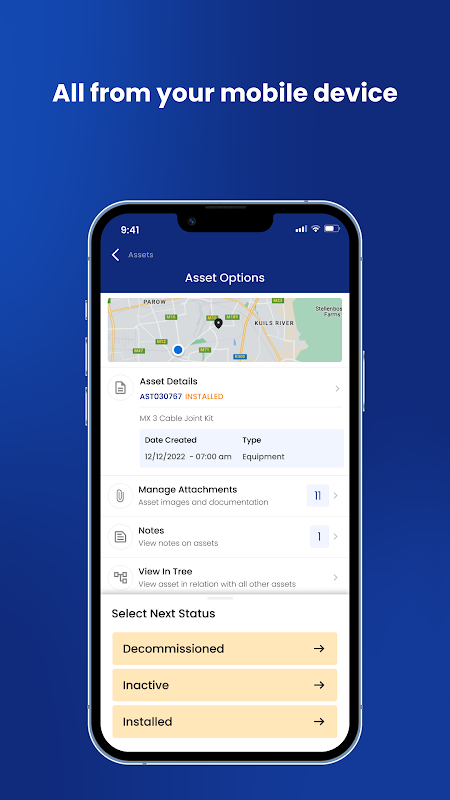 - تحديد الموقع الجغرافي للموارد/العملاء/الأصول، لعرضها على الخرائط على الهاتف المحمول والبوابة الإلكترونية.