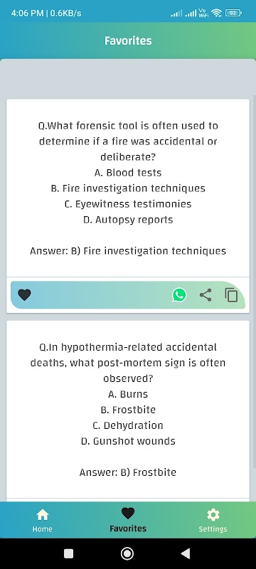 "Forensic Science MCQ Quiz" هو تطبيق غير متصل بالإنترنت مصمم لأي شخص متحمس لتعلم علوم الطب الشرعي. مع أكثر من 5000 سؤال متعدد الاختيارات تغطي 50 فئة، يقدم هذا التطبيق طريقة شاملة لتوسيع معرفتك بتقنيات الطب الشرعي، وتحليل مسرح الجريمة، والتعامل مع الأدلة، والمزيد.