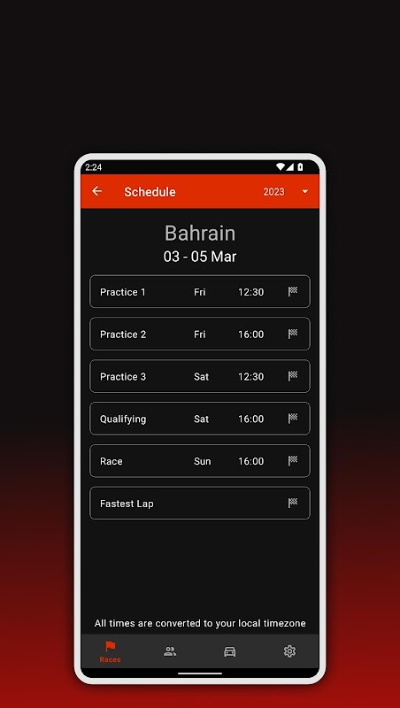 ★ الجدول الزمني لكل عطلة نهاية أسبوع للسباق ، والذي يتضمن أوقات جلسات التدريب ،