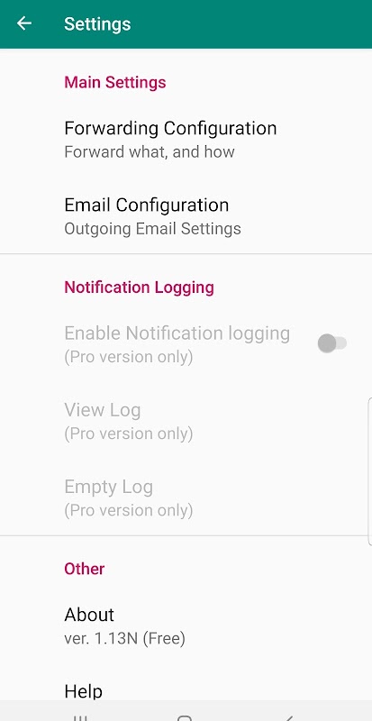 هناك أيضًا إعداد لـ LOG Notifications ببساطة (إصدار Pro). إذا تم تشغيل هذا ، فسيتم تسجيل جميع الإشعارات في ملف ، بغض النظر عن أي إعدادات إعادة توجيه.