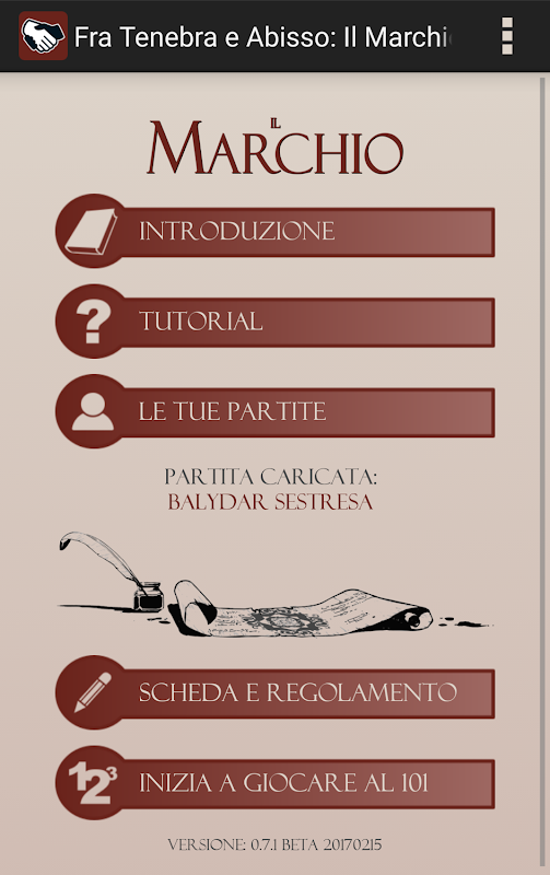 هل تحب librigame والمغامرات النص؟ هل تحب لعب الأدوار والأدب التفاعلي؟ جرب الحلقة الأولى من سلسلة Fra Tenebra e Abisso ، وهو عمل معلق بين الأدب ولعب الأدوار: ستجد هنا أجواء ألعاب الكتب الخيالية القديمة جنبًا إلى جنب مع التطبيق العملي وإمكانية تشغيل التطبيق.