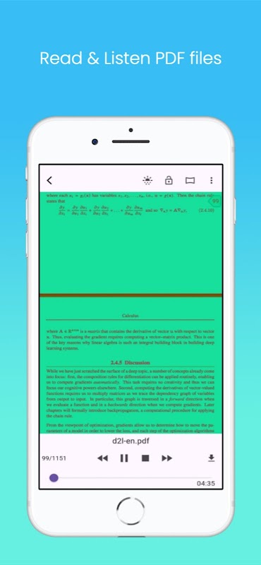 • استمع إلى الأصوات الطبيعية المُنشأة وقم بتنزيلها أثناء قراءة ملفات PDF.
