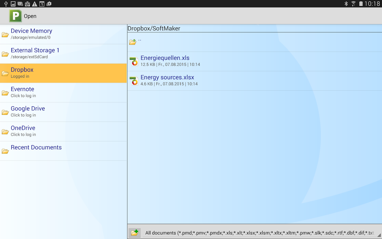 Office: PlanMaker Mobile is the only spreadsheet for Android that lets you open, edit, and save all your Microsoft Excel worksheets with all data, formulas, and formatting intact. It displays your Excel worksheets exactly like they look on your PC - it even displays the charts in your Excel files correctly and updates them!