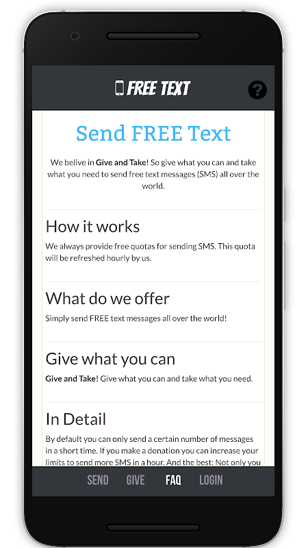 نحن اجد في الأخذ والعطاء! حتى تعطي ما يمكنك وتأخذ ما تحتاج إلى إرسال رسائل نصية مجانية (SMS) في جميع أنحاء العالم.
