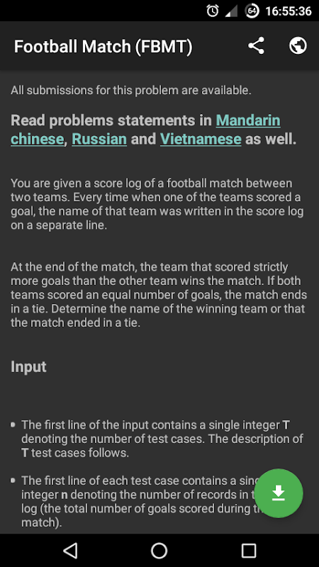 لذا في المرة القادمة، عندما كنت بعيدا عن جهاز الكمبيوتر الخاص بك، وقراءة الأسئلة بشكل مريح من هاتفك. تحسين الأداء الخاص بك في مسابقات تنافسية الترميز، من خلال ممارسة الأسئلة 24/7.