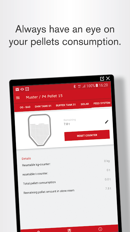 مع التطبيق Fröling الاتصال يمكنك التحقق ومراقبة الغلايات Fröling في أي وقت من أي مكان. في غضون ثوان، يمكنك الحصول على لمحة عامة عن حالة النظام الحالي، ويمكن بسهولة ويسر تغيير أهم قيم الحالة والإعدادات. يمكنك أيضا تعيين الرسائل التي الحالة التي ترغب في الحصول على (على سبيل المثال عندما مربع الرماد هو كامل أو عندما يتم عرض رسالة خطأ).