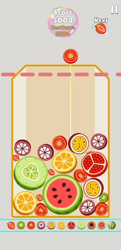مهمتكم هي التحكم في سقوط الفواكه، مما يسمح للفواكه المتطابقة بالتصادم والاندماج في فواكه جديدة. استمروا في الدمج والتطور حتى تنمو فواكهكم لتصبح بطيخات ضخمة. لكن انتبهوا، المساحة محدودة، لذا ستحتاجون إلى التخطيط لكل خطوة بعناية لتحقيق أفضل دمج.
