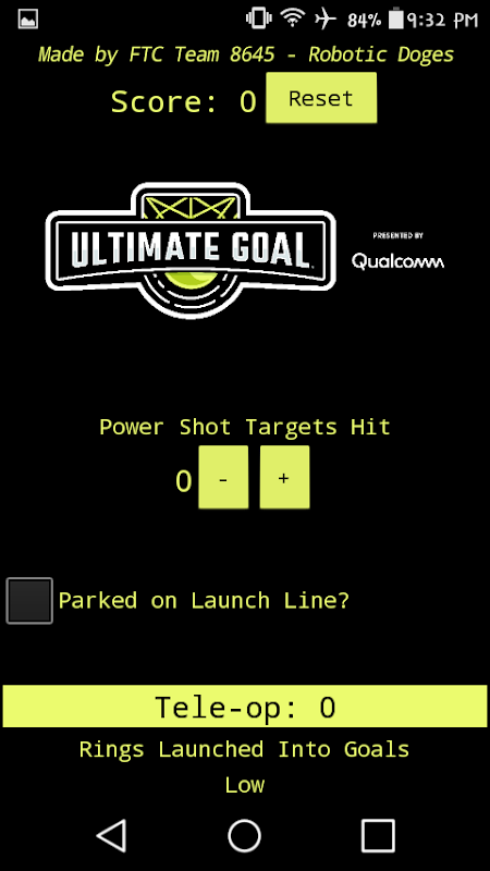 تطبيق التهديف لموسم FTC Ultimate Goal.