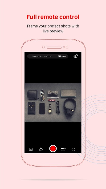 • التحكم عن بعد الكاملة - ضبط الإعداد، بدء وإيقاف التسجيل، والتحول أكثر، التقاط صورة أثناء تسجيل الفيديو.