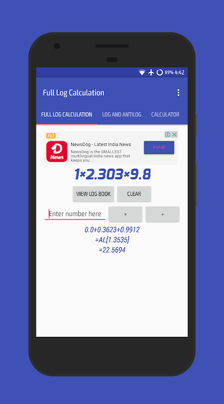 ➡️️The app will do its magic and will show you the log calculation + final answer.