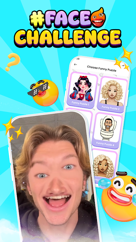 - Face Puzzle Cam: حرك وجهك، وارمض لمطابقة الأجزاء، والتقط كل رد فعل.