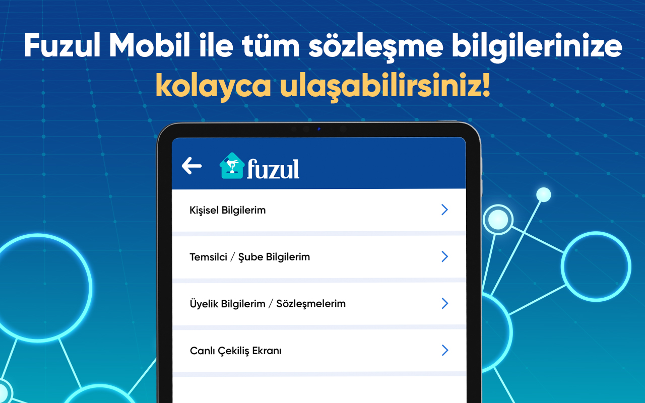 مع حملات فوزول، يمكنك بسهولة شراء منزلك وسيارتك عن طريق اختيار خيارات التقسيط التي تناسب ميزانيتك؛ مع فوزول موبايل، المصدر الرقمي للادخار، يمكنك الوصول إلى عقود منزلك ومركبتك بنقرة واحدة. دون الذهاب إلى الفرع؛ يمكنك عرض معلوماتك الشخصية المسجلة والوصول بسهولة إلى معلومات ممثلك وعضويتك وفرعك باستخدام رقم الهوية ورقم العقد والهاتف المحمول فقط. إذا كنت ترغب في ذلك، يمكنك تجربة إثارة السحب على Fuzul Mobile!