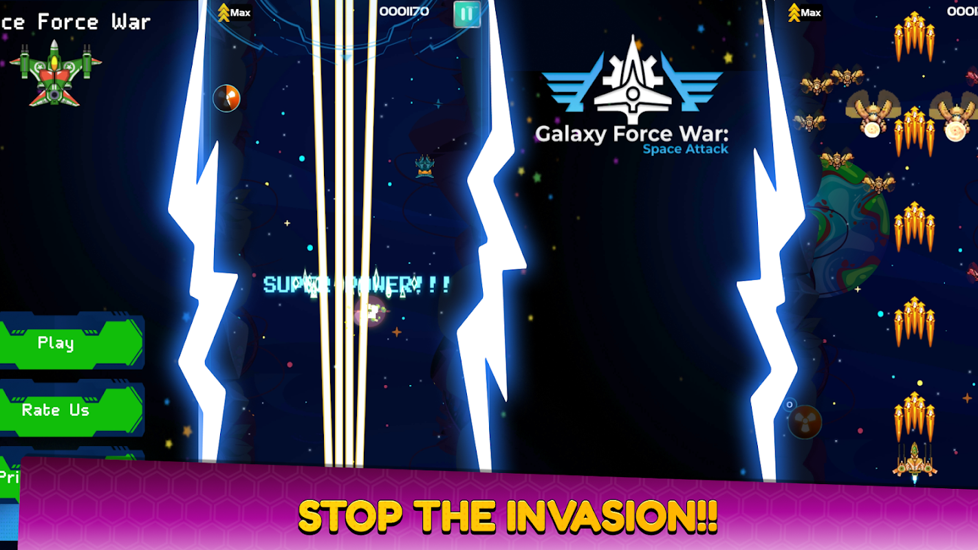 بدأ الآن Galaxy Force War Space Attack، خطط لاستراتيجية معركتك جيدًا وقم بتحديث مقاتلك لحماية وطننا. لنفترض أنك من كبار المعجبين بـ Galaxy Force مثل Galaxy بطرق إطلاق نار حديثة جديدة وتريد منح الحرية لـ Space Attack. في هذه الحالة، Galaxy: Space Shooter - Free 80s Games هي اللعبة المثالية لك.