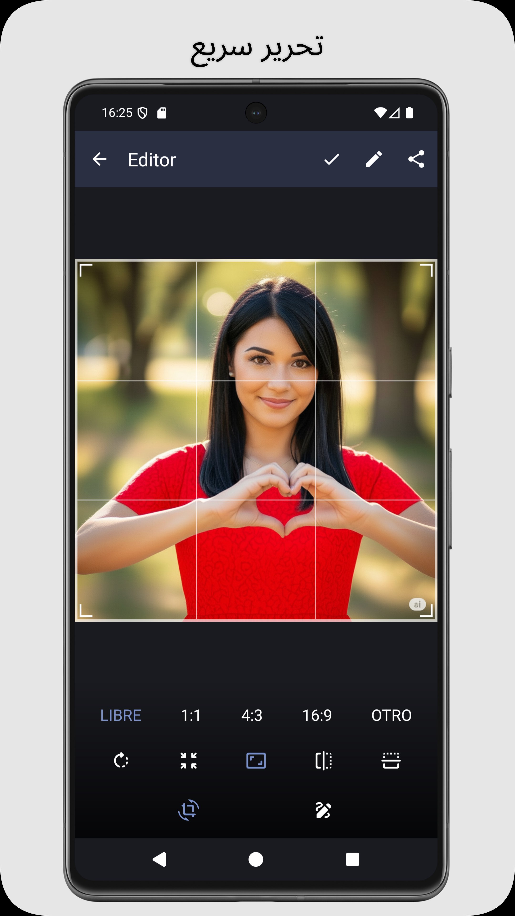 قص، دوّر، اقلب، أو غيّر حجم الصور بإيماءات سهلة وبديهية.