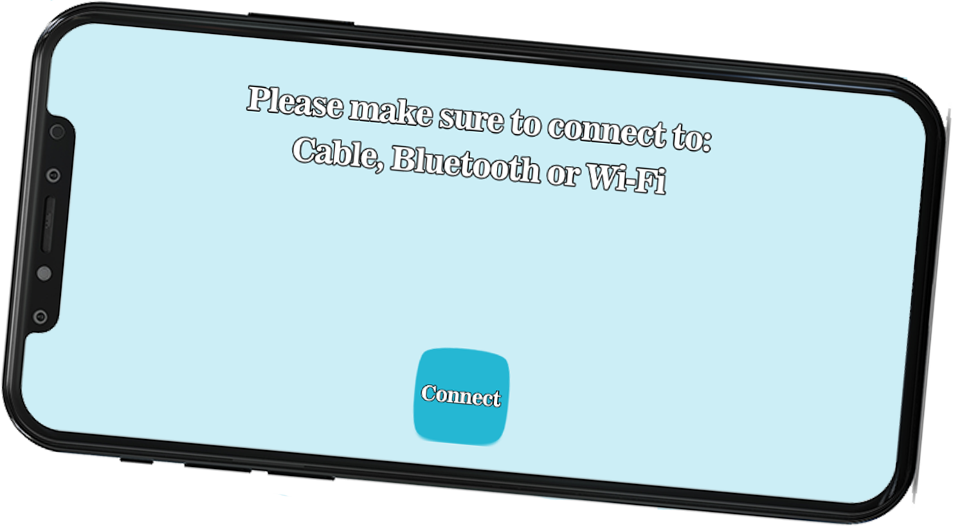 1 - قم بتوصيل جهازك بالهاتف من خلال Wi-Fi أو Bluetooth أو USB 2.0 أو 3.0 ؛ واستمتع مع صديقك