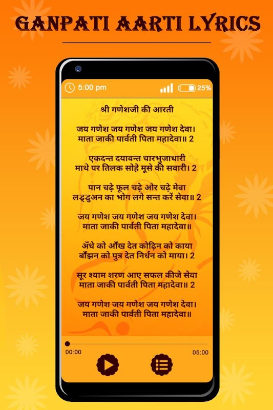 In this application Aarti of lord Ganesha is given with audio and lyrics both.