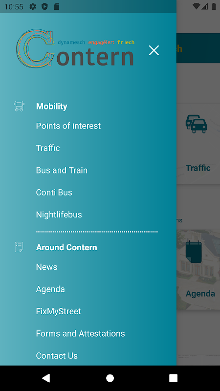عن طريق تنزيل تطبيق الهاتف المحمول الجديد الخاص ببلدية Contern ، يمكنك الآن الوصول بسهولة إلى أخبارنا وجدول أعمالنا الذي يحتوي على أحداث مختلفة داخل وحول مجتمعنا. وفي الوقت نفسه ، ستساعدك الخريطة المتكاملة التي تحتوي على نقاط اهتمام مختلفة في فئات مختلفة في العثور على ما تحتاجه بالضبط. يمكنك أيضًا العثور على معلومات حول جميع خطوط الحافلات والقطارات.