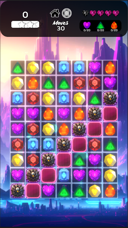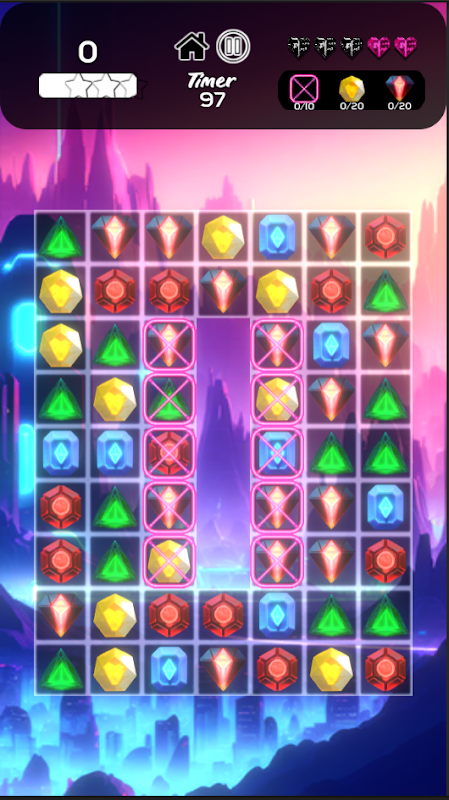 استعد للانتقال إلى عالم سايبربانك ساحر وأنت تشرع في رحلة لا تُنسى عبر Gemtronix. استعد للمطابقة والاستراتيجية وإطلاق العنان لقوة الأحجار الكريمة في هذه المغامرة المذهلة لمطابقة البلاط والمذهلة بصريًا.