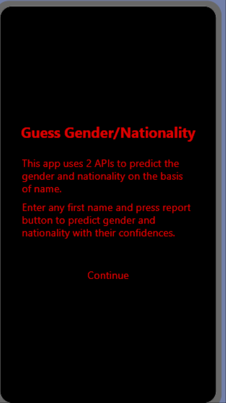 عند إدخال اسم، سيخبرك بجنس الاسم وجنسيته. مباشرة يمكنك تنزيل التطبيق وبدء العمل.
