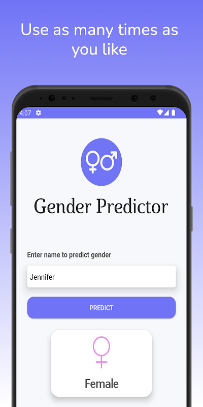 التطبيق للتنبؤ بجنس الشخص بناءً على اسمه