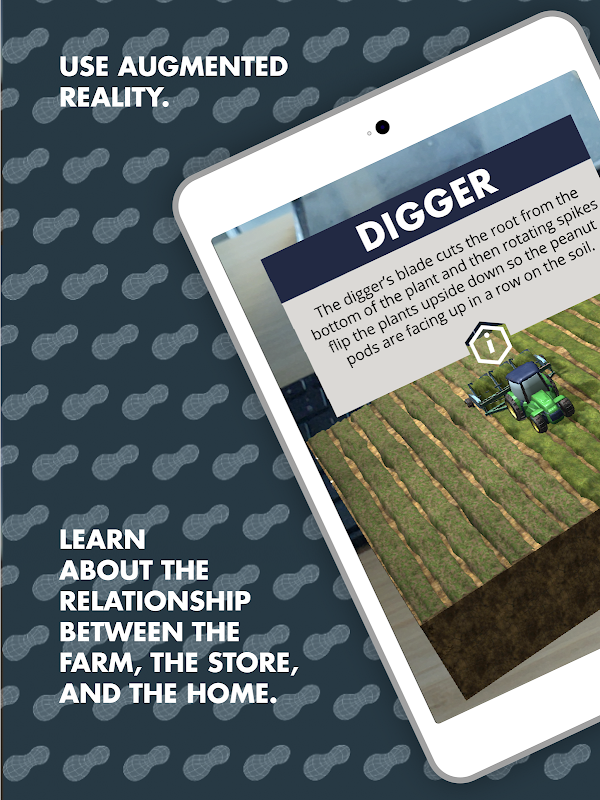 The Georgia Farm Bureau presents an augmented reality for youth to learn about the farm to plate journey of one of the longest standing staples in the country, the peanut. Divided into two trios of AR experiences, peanut and horticulture, learn about the relationship between the farm, the store, and the home.