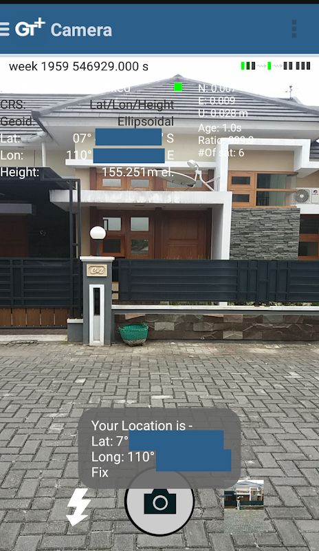 هذا التطبيق يسمح لك أن تأخذ صورة وقياس مع وحدة GNSS منخفضة التكلفة (مثل وحدة GNSS U-كتل أو E-GNSS من potretudara: http://www.potretudara.com/low-cost-gps-gis/). يتم تخزين إحداثيات يقاس من وحدة GNSS منخفضة التكلفة لEXIF الصورة الوصفية في الوقت المناسب عند النقر على زر "الاستيلاء". استخدم هذا لخلق تحديد الموقع الجغرافي أكثر دقة لمستوى متر الفرعية. مفيدة جدا للتعداد، ودعم نظم المعلومات الجغرافية، مخرج التقارير وغيرها.