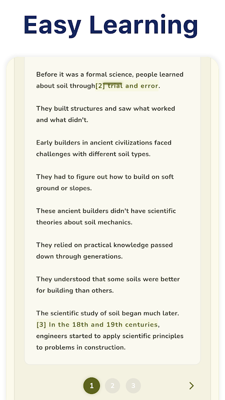 قم بتطوير فهم قوي للهندسة الجيوتقنية من خلال هذا التطبيق التعليمي الشامل المصمم للطلاب والمهندسين ومحترفي البناء. سواء كنت تدرس خصائص التربة أو استقرار المنحدر أو تصميم الأساس، فإن هذا التطبيق يقدم تفسيرات واضحة ورؤى عملية وتمارين تفاعلية لتعزيز فهمك للمواد الأرضية والاستقرار الهيكلي.
