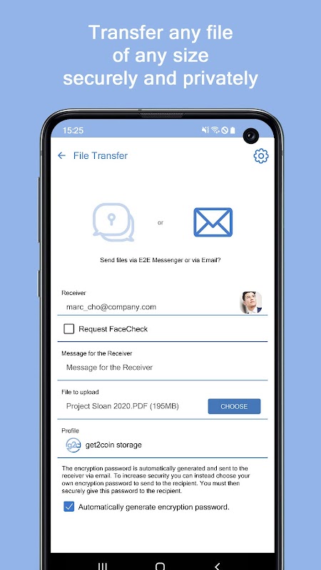ميزات رائعة: يتيح لك FaceCheck معرفة من يقوم بفتح ملفاتك المرسلة. قم بتعيين كلمة مرور التشفير الخاصة بك.