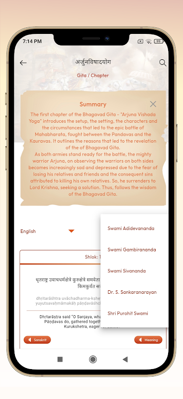 اكتشف Bhagavad Gita بأي لغة. القراءة والكتابة والاستماع جيتا.