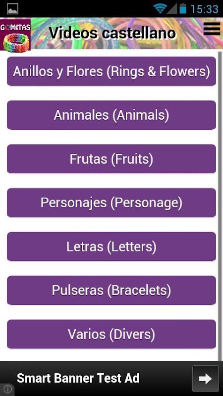 Gomitas, aplicación Android que reúne los mejores video tutoriales de manualidades con gomas elásticas, en Español, Ingles. Recopilatorio organizado por secciones, Pulseras, animales, Frutas, Personajes, Figuras, Letras, Anillos y mucho más.