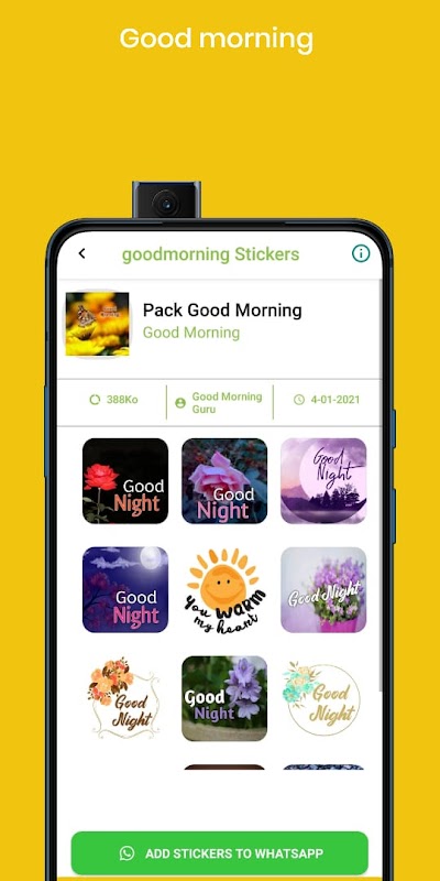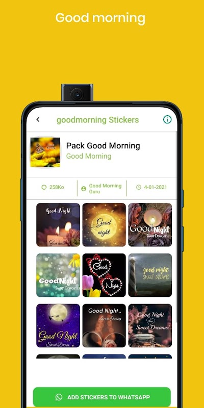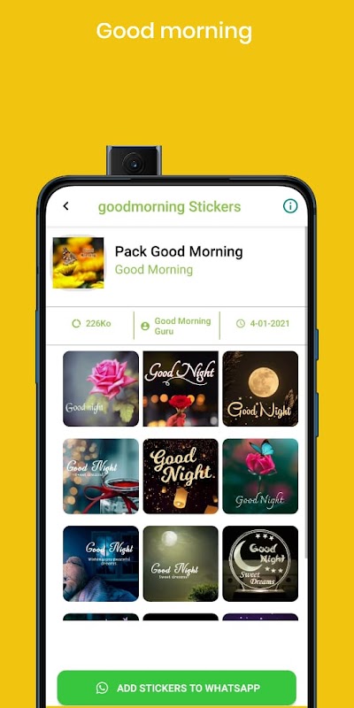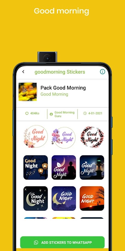 Autocollants Bonjour pour WhatsApp. WAsticker Bonjour et Bonne nuit
