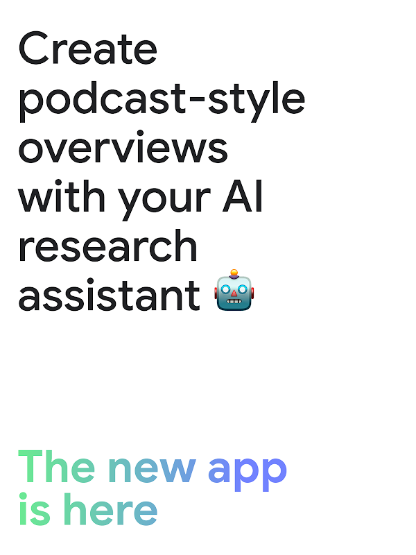 الآن، مع تطبيق NotebookLM، يمكنك إنشاء دفاتر ملاحظات والوصول إليها، وطرح الأسئلة متى ما خطرت ببالك، والاستماع إلى ملخصاتك الصوتية بأسلوب البودكاست أثناء التنقل مع إمكانية التشغيل في الخلفية ودعم العمل دون اتصال بالإنترنت.