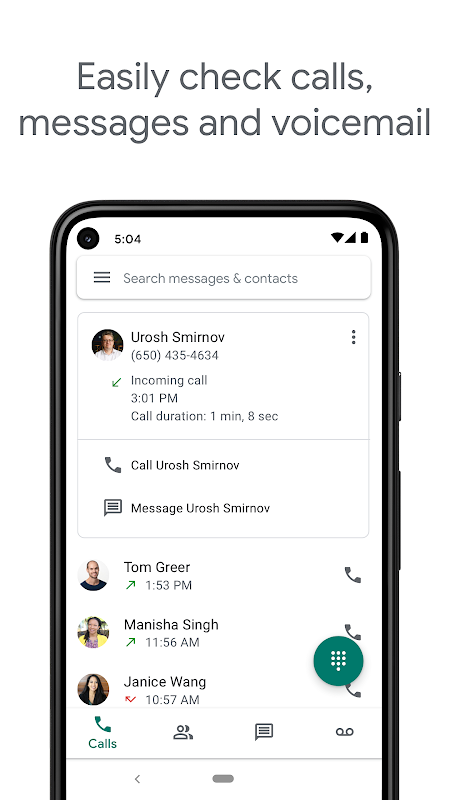 ملاحظة: لا يعمل تطبيق Google Voice باستخدام الحسابات الشخصية على Google إلّا في الولايات المتحدة وحسابات Google Workspace في أسواق محدّدة. ولا تتوفّر إمكانية المراسلة النصية في بعض الأسواق.