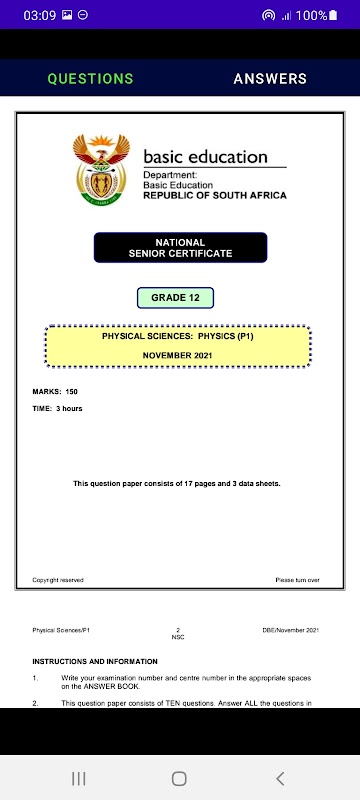 الإصدارات القديمة لـ Grade 12 Physical Sciences