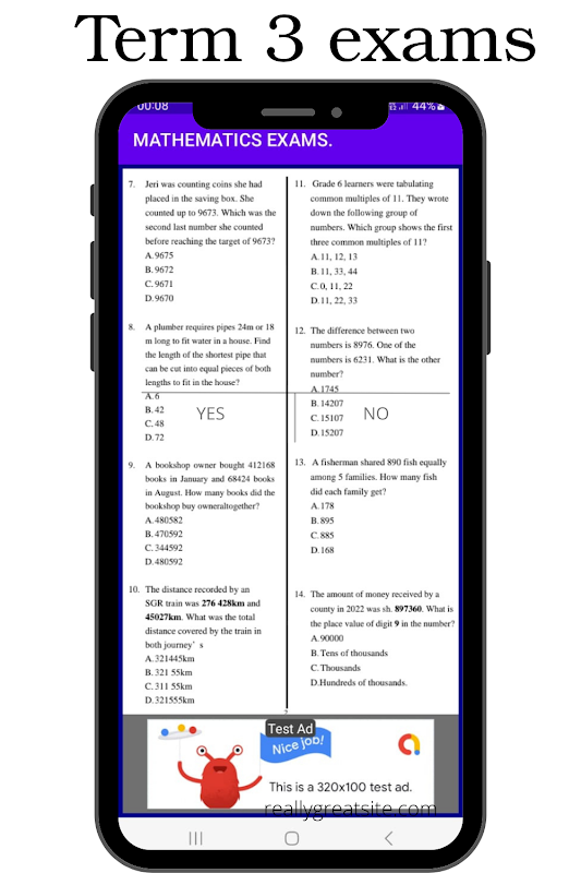 This Application features Grade 5 Mathematics Exams and Marking Schemes