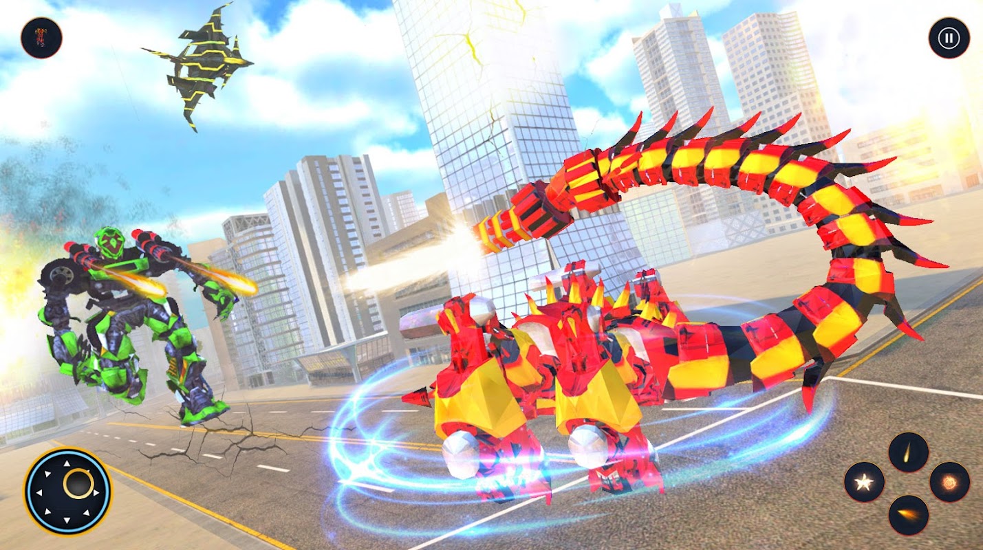 This Robot scorpion city rescue transformation games will let you fight with monster robots and other high level limo robot transformation and you have to survive the attack of ufo robot transformation by using the flying helicopter robot transformation skill to use jet robot transformation power to save city by using your bee robot skills.it's time to launch new mission of special robot scorpion shooting transform city rescue. complete you shooting mission in your transforming scorpion robot game and transform into scorpion robot car transformation to drive robot scorpion car to complete all missions. no need to afraid of robot enemies and utilize your multi robot scorpion transforming power to fighting robot of new robot car games.