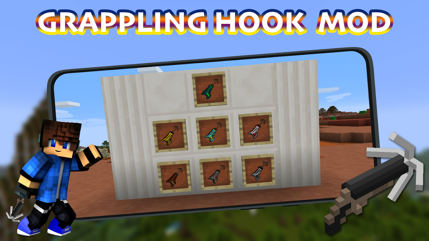 إن Grappling Hook Mod for Minecraft PE عبارة عن معدات تسلق لـ MCPE