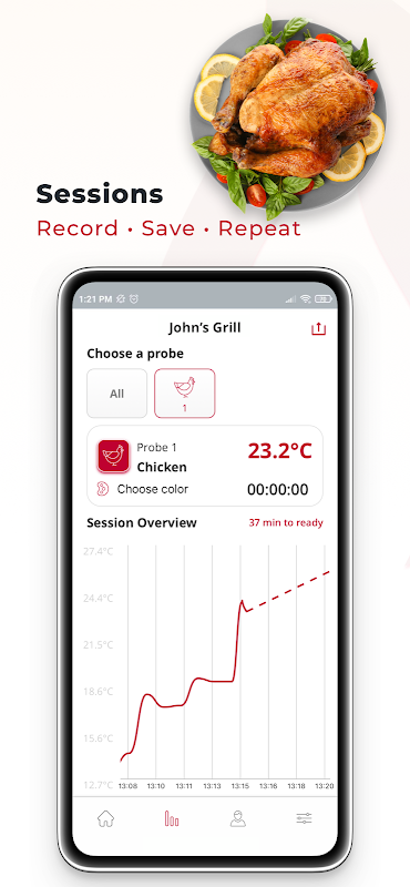 - تسجل "الجلسات" كل خطوة تخطوها باستخدام GrillEye® Max ، مع التأكد من أنه يمكنك تكرار كل وصفة ناجحة.