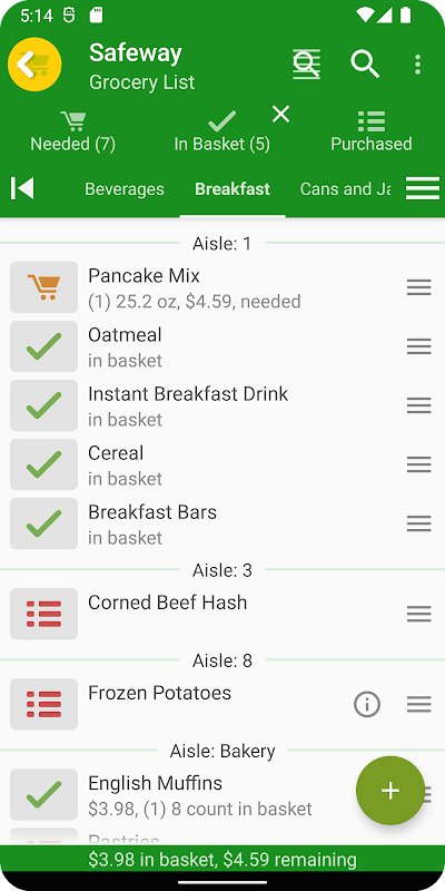 يمكن استخدام سلة اختيارية أثناء التسوق للاحتفاظ بإجمالي العناصر التي حددتها حتى الآن. ضع العناصر في السلة أثناء التسوق وعند الانتهاء ، استخدم ميزة Checkout لتمييز العناصر في سلة التسوق الخاصة بك بسرعة على أنها مشتراة.