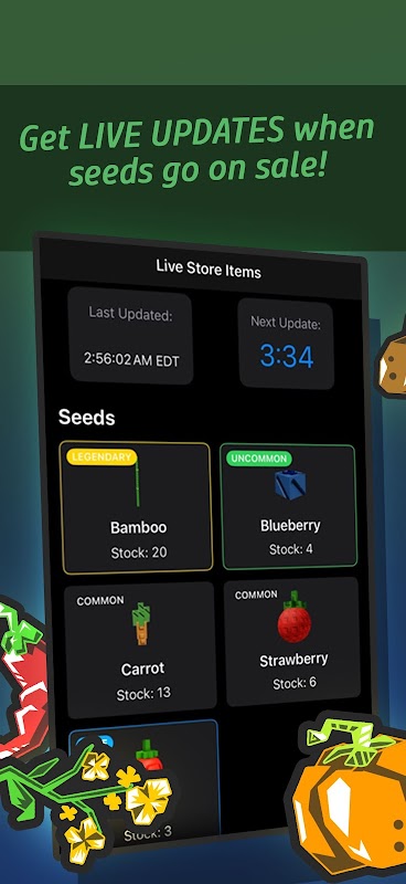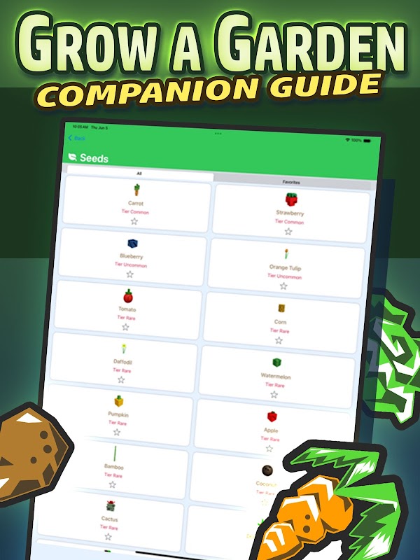 يُبقي تطبيق "Grow A Garden Companion" كل جانب من جوانب حديقتك في متناول يدك، بفضل بيانات المتجر اللحظية، والتنبيهات المُخصصة، وجميع أدوات التخطيط التي تحتاجها للنجاح. سواء كنت تُتابع توافر البذور، أو تُراقب أحوال الطقس، أو تُجدول مهامك اليومية، فإن هذا المُخطط الشامل يُسهّل إدارة حديقتك.