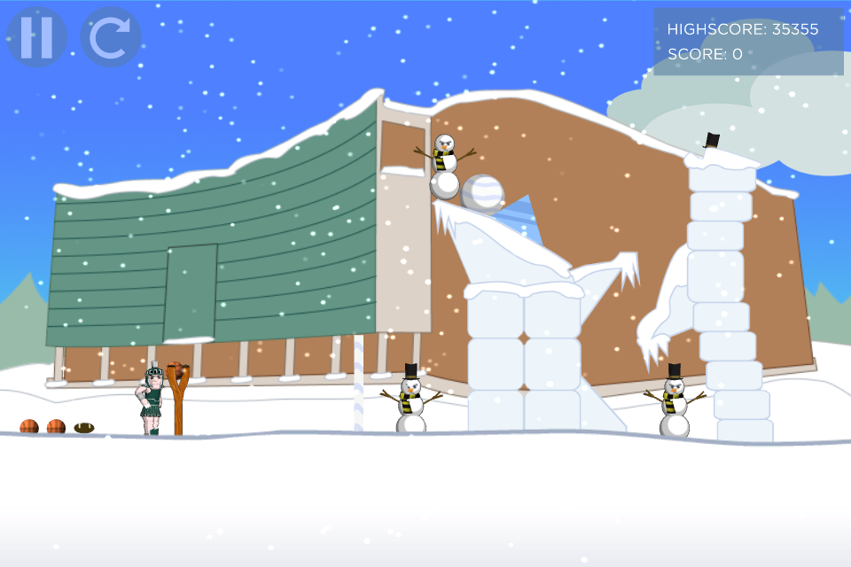 فخر الإسبارطيين على المحك! في جميع أنحاء حرم جامعة ولاية ميشيغان، أقامت جامعات العشرة الكبار المتنافسة حصونًا ثلجية مليئة برجال الثلج المتذمرين. ساعدوا سبارتي في التخلص من هؤلاء الرجال الثلجيين المزعجين في الحرم الجامعي! تتميز لعبة رجال الثلج المتذمرين بأسلوب لعب سهل التعلم، ولكنه صعب الإتقان في هذه المحاكاة الساخرة.