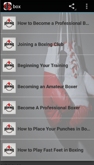 Dans cette application, vous pouvez trouver tous les cours de boxe qui peuvent vous aider à améliorer votre auto et à apprendre facilement toutes les techniques.