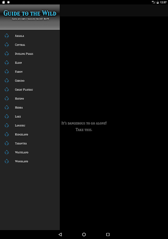 "Zelda: Breath of the Wild" is a registered trademark of the Nintendo Corporation. "Guide to the Wild" is a fan made application and not associated with, or developed by, the Nintendo Corporation in any way. All information, in-game images, promotional images, and icon images are the property of Nintendo Corporation.