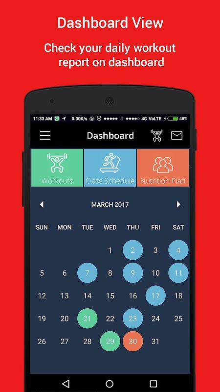 ✔️ جداول الحصص : اعرض فصل الصالة الرياضية مع التاريخ والوقت.