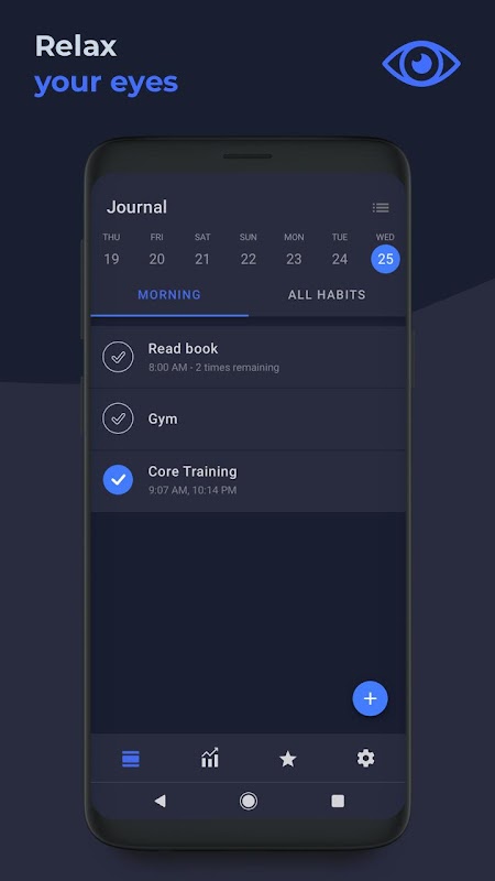 We care about your eyes and your battery. As an android habit tracker app, Habitify (must) looks amazing in Dark Mode, especially in OLED devices.